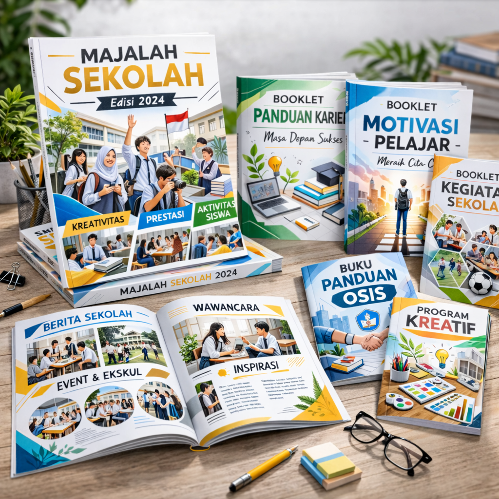 Kami berpengalaman mencetak buku tahunan sekolah, buku pelajaran, majalah, booklet, dan berbagai media cetak institusi dengan standar profesional.