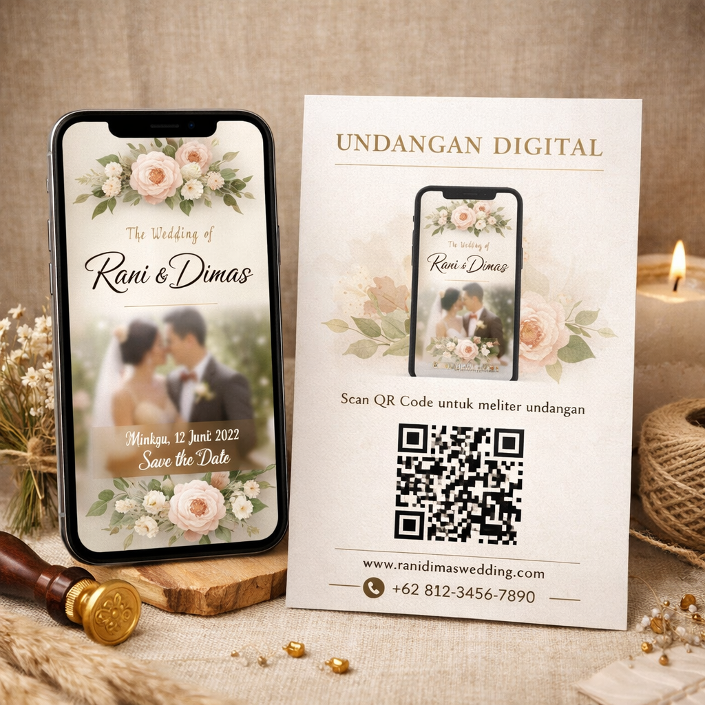 Undangan digital berfungsi sebagai media undangan berbasis online yang praktis, cepat dibagikan, hemat biaya, serta mudah diakses kapan saja melalui smartphone atau perangkat digital lainnya.